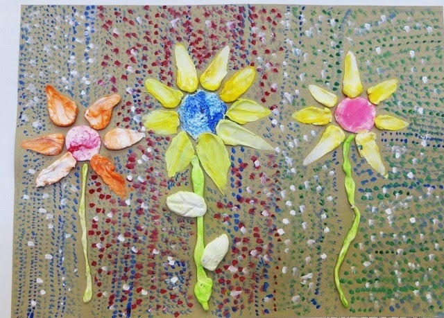 5年生の時に脳腫瘍が再発。一年近く治療のため入院。6年生から復学しましたが、副作用などで体調が悪く一日1時間~2時間ほどしか学校に通えなかった時に、夏に咲く美しいひまわりを紙粘土と絵の具で描きました。